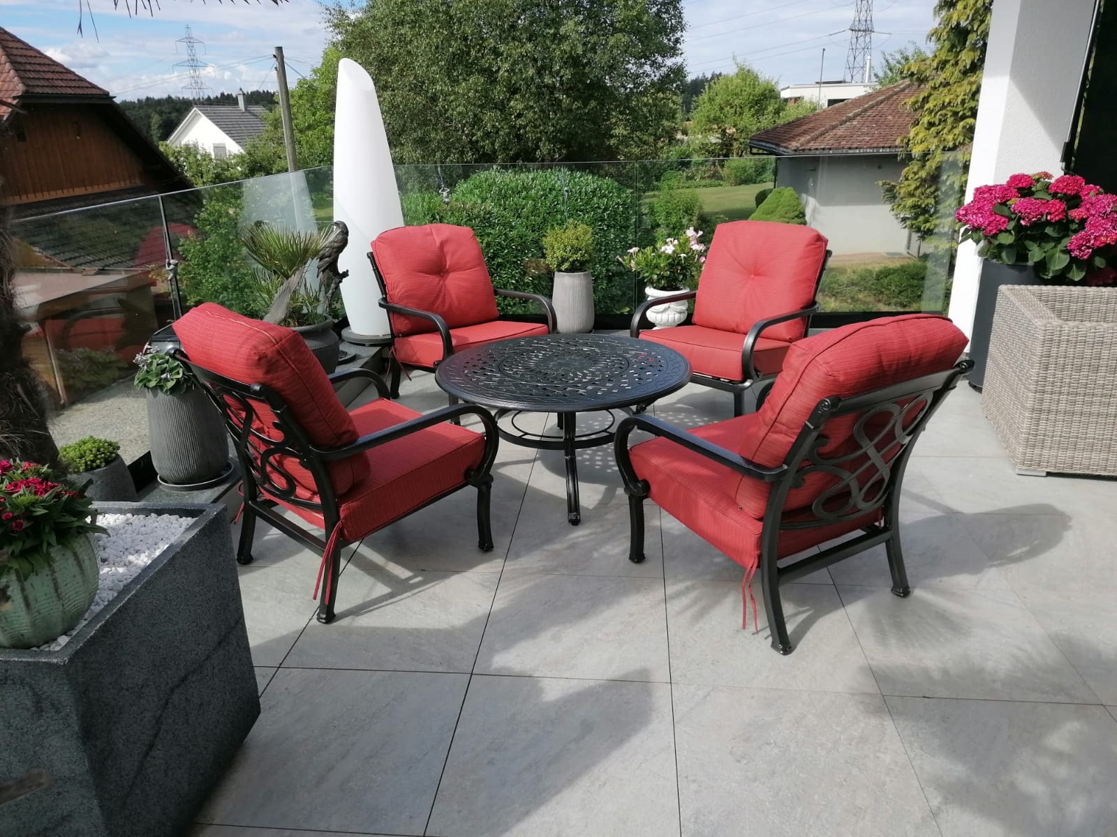 Unsere Gartenlounge besticht durch ihre aussergewöhnliche Ästhetik und eine ergonomische Sitzhaltung, die höchsten Komfort garantiert. Anders als herkömmliche Rattan-Lounges überzeugt die Aluminiumguss-Lounge mit einer langlebigen und pflegeleichten Oberfläche, die weder rostet noch witterungsanfällig ist.