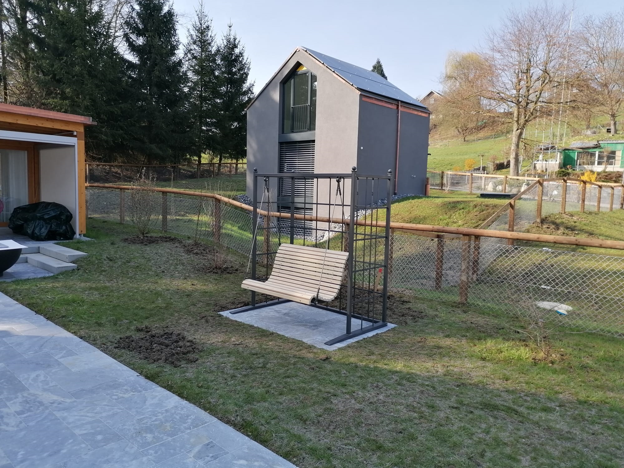 Schaukel aus Metall und Accoya-Holz